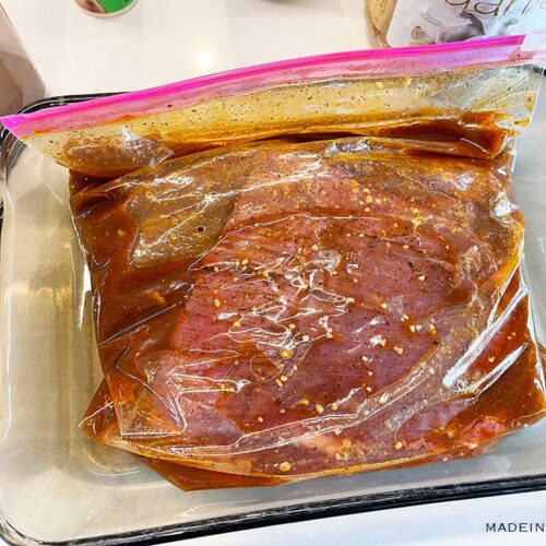 - Put fajitas in a zip bag, pour marinade over top inside bag. Remove as much air as possible, then seal.